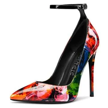Castamere Womens Sexy Ankle Strap High Heels Pumps Elegant Pointy Toe Stilettos 12CM Heel Shoes Colourful Patent Shoes 9 M US