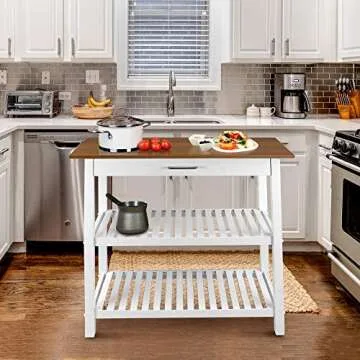 Casual HOME Kitchen Island with Solid American Top, White & Cherry Natural