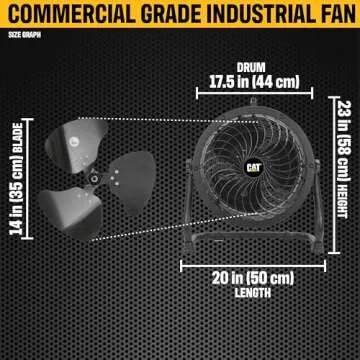 Show more Caterpillar, a brand synonymous with quality and ruggedness, introduces the CAT HVD-14AC High-Velocity Drum Air Circulator Fan. Designed to deliver powerful airflow with its robust 4-speed dual ball bearing motor, this fan is perfect for both residential and industrial environments. With a 14" diameter and a striking black design, it effortlessly merges aesthetics with functionality, ensuring that you enjoy a cool breeze without compromising on style. Its ability to pivot a full 360 degrees allows for customizable airflow direction, making it the ideal choice for any setting.