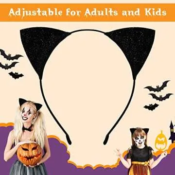 Cat Ears Headband for Women Girls, Halloween Cosplay Cat Costume Hair Accessories for Adult Kids Black
