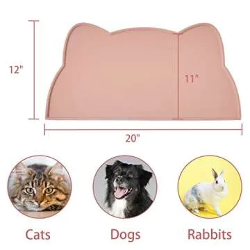 Cat Food Mat, Silicone Pet Feeding Mat for Floor Non-Slip Waterproof Dog Water Bowl Tray Cushion (20" x 12", Tea Rose)