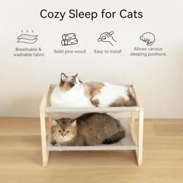 Cat Hammock Cat Beds for Indoor Cats, Double Wooden Cat Bed, Elevated Cat Bed with Two Breathable Washable Covers, 20 x 16.5 x 13 Inch Cat Beds & Furniture
