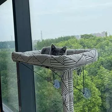 Cat Hammock Window Seat for Indoor Cats,Lower Support Safety Iron Cat Window Perch,Cat Enjoys 360 ° Sunbathing On The Window Hammock (White Diamond Hammock)