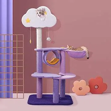 Cat Tree Cat Tower, 3-Level Indoor Cat House Condo with Sisal Scratching Posts Perches, Activity Center Cat Furniture with Basket, Hammock, Tree Hole for 2 Cats Activity Centre,4