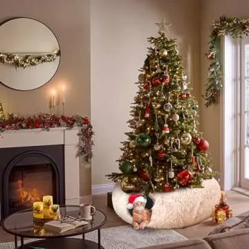 Cat Tunnel with Cat Bed for Indoor Cats, Soft Plush Peekaboo Cat Cave Donut Tunnel, Multifunctional Cat Playground Toys Hideplace for Small Medium Large Cats, Kittens, Rabbit, Ferret (Cream White)