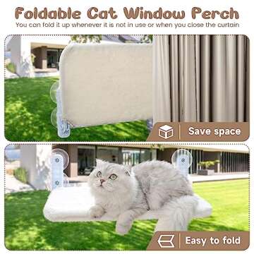 Cat Window Perch - Foldable Cordless Cat Hammock for Window, Cat Hammock with Steel Frame and Strong Suction Cup, Soft Touch Comfortable Skin-Friendly Large Foldable Cat Window Seat