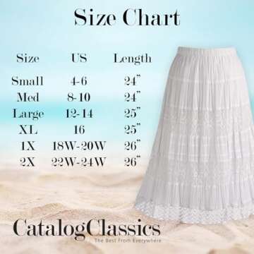 CATALOG CLASSICS Long Skirts for Women Midi Length Cotton Skirt Boho Lace Skirt - White, 3X
