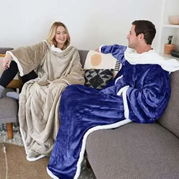 Catalonia Sherpa Wearable Blanket with Sleeves Arms, Comfy Sleeved TV Wrap Blanket, Large Snuggly Throw for Women and Men, Gift for Her