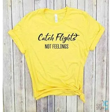 Show moreUnleash your wanderlust with our Catch Flights Not Feelings tank top, the perfect blend of style and comfort designed especially for women. Made from high-quality, breathable fabric, this vacation shirt ensures you stay cool and chic whether you’re jet-setting to a tropical destination or enjoying a casual day out. The light, soft material offers a relaxed fit, making it the ideal choice for those who love to travel in comfort. This trendy tank top features a playful phrase that resonates with all travel enthusiasts, making it a conversational piece wherever you go.