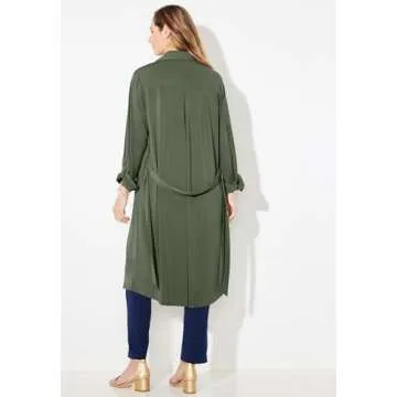 Show moreStep up your style game with the Catherines Women's Plus Size Convertible Buttonfront Shirt Dress. This chic olive green dress is designed for flexibility and elegance, making it the perfect addition to your wardrobe for any occasion. Featuring a refined, polished look, it easily transitions from a sophisticated dress suitable for business presentations to a relaxed tunic ideal for Casual Fridays. Its convertible design means you can wear it buttoned up as a dress or open over a tank top, providing versatile styling options for different looks.