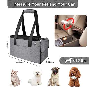 Cathpetic Pet Car Seat Travel Carrier - Console Car Seat for Dogs UP to 12 Lbs, Dog Carriers for Small Dogs, Airline Approved Cat Carrier for Travel and Shopping, Washing Machine