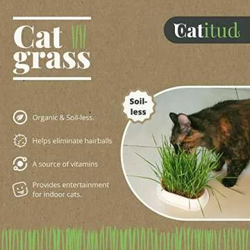 CATITUD Cat Grass Growing Kit with 5 Packets HYDROPONIC Seeds | Cat Grass Kit Includes Pot with Non-Slip Base | Cat Grass for Indoor Cats with Planter, Best Gift for Cats