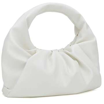 CATMICOO Cloud Hobo Handbags for Women Dumpling Shoulder Bags with Ruched Design (White)