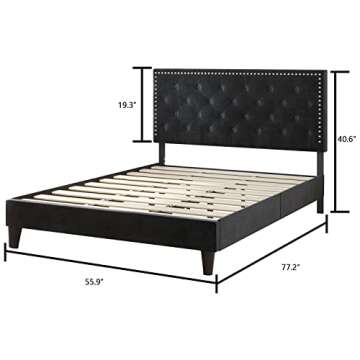 Show moreExperience the perfect blend of style, comfort, and durability with the Catrimown Full Size Bed Frame. This exquisite velvet upholstered bed frame features an adjustable button tufted design complemented by stylish nailhead trim, making it a striking centerpiece in any bedroom. With ample sponge cushioning on the headboard, you can lean back in complete comfort whether you're reading, relaxing, or enjoying a good night's sleep. The black velvet enhances any decor scheme, making it the ideal choice for young adults or teenagers seeking both elegance and practicality in their sleeping space.