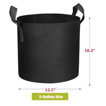 Show moreIntroducing the Cavisoo 24-Pack 5 Gallon Grow Bags, the perfect solution for avid gardeners and plant lovers looking to cultivate their green thumb. Crafted from high-quality 300g thick non-woven fabric, these durable grow bags are designed to be reused for over three years, ensuring that both your plants and your investment thrive. The robust and breathable material not only promotes ideal growth conditions but also effectively drains excess water, preventing any risk of overwatering — a common pitfall for many gardeners. Additionally, the reinforced polypropylene webbing handles provide X-shaped stitching that enhances support, allowing you to move your plants with ease.