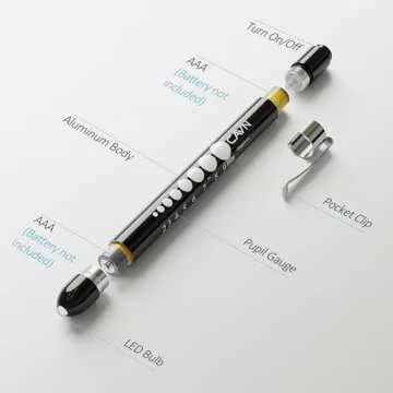 CAVN Pen Light with Pupil Gauge LED Penlight for Nurses Doctors, 2 Pcs Reusable Medical Penlight for Nursing Students (Black/White)