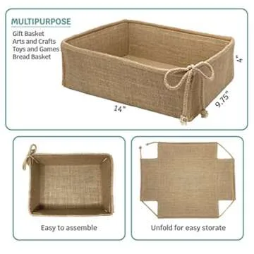 CB Accessories Decorative Basket Rectangular Burlap Fabric Storage Bin Collapsible Organizer for Home, Decor and Gifts (Large 14 x 9.75 x 4 inches)