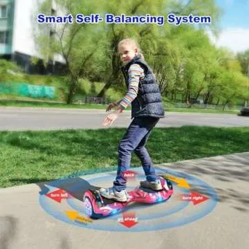 Show more Introducing the CBD Scooter with Colorful LED Lights – the ultimate riding experience for adventurers of all ages! With 6.5" wheels and powerful dual 300W motors, this hoverboard boasts an impressive speed of up to 7.5 MPH and a range of 8.5 miles on a single charge. Crafted from a durable aluminum alloy frame and high-quality PC material shell, it guarantees a robust, stable ride for young riders and adults alike. The innovative self-balancing design allows smoother control, making it easier to maneuver through tight spaces or perform fun tricks with effortless grace.