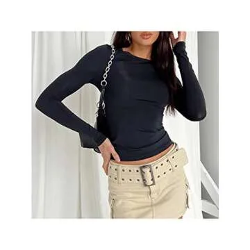 Cbsdezanos Dupes Y2k Long Sleeve Sexy Fitted Crop T Shirt Women Long Sleeve Slim Fit Basic Tops Crewneck Solid Going Out Tees (D-Black, M)