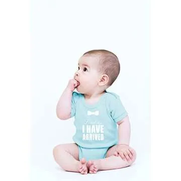 Show more Introducing the CBTWear Ladies I Have Arrived Funny Newborn Romper, a delightful and playful addition to your little one's wardrobe. This adorable light blue bodysuit is not just a piece of clothing; it's a statement piece that captures the joy and cuteness of your newborn. Crafted from 100% cotton, this onesie promises exceptional softness while ensuring durability with every wear. Our innovative printing process, carried out in the USA, guarantees vibrant colors and high-quality designs that retain their charm even after multiple washes. Whether it’s for a special occasion or just a casual day at home, this onesie is crafted for comfort and style.