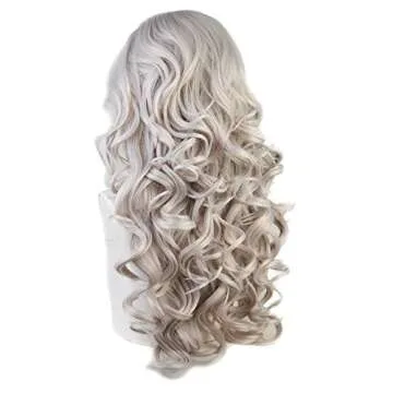 CBWIGS Long Wavy Gray Synthetic Lace Front Wigs for Women Grey Fiber Hair Wigs 20 inch