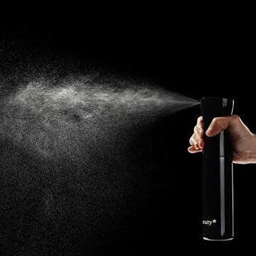 Show more Experience the ultimate in hair moisture with our innovative Continuous Mist Spray Bottle. Designed for those who cherish their locks, this sleek black bottle elevates your hair care routine by delivering a fine, even mist that effortlessly hydrates your hair without over-saturating. Its unique design allows you to incorporate your favorite natural oils without any degradation of their therapeutic properties, making it a must-have for anyone who values quality hair care.