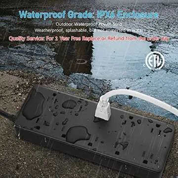 CCCEI 10 Outlets Outdoor Power Strip Weatherproof, 1700J Surge Protector Waterproof Multiple Outlet Exterior Power Strip, Mountable 6 FT 15Amp Outside Extension Outlet with Flat Plug. (6FT, Black)