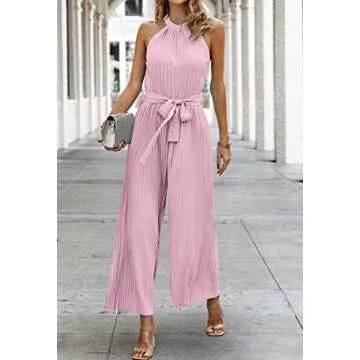 CCTOO Women's Halter Neck Pleated Sexy Sleeveless Wide Leg Long Jumpsuit