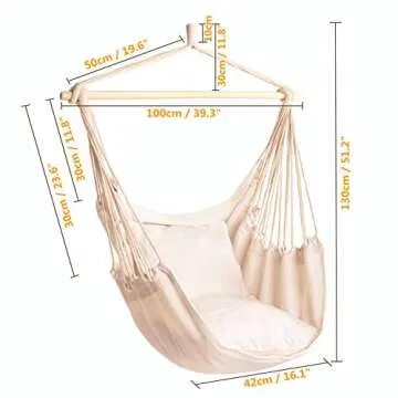 CCTRO Hanging Rope Hammock Chair Swing Seat, Large Brazilian Hammock Net Chair Porch Chair for Yard, Bedroom, Patio, Porch, Indoor, Outdoor - 2 Seat Cushions Included