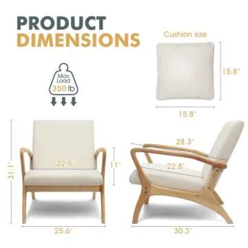 Show moreIntroducing the CDCASA Mid-Century Modern Accent Chair, a harmonious blend of contemporary design and exceptional comfort. This versatile chair is perfect for your living room, bedroom, office, or reading nook, transforming any space into a stylish sanctuary. Crafted with a sturdy solid rubber wood frame that supports weight up to 350 lbs, this chair promises both durability and sophistication. The lightly upholstered fabric adds a touch of elegance while the wide 28.3'' long armrests provide ideal support for those relaxing afternoons. Whether entertaining guests or curling up with a good book, this chair is destined to become your favorite spot.