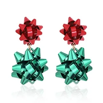 CEALXHENY Christmas Earrings for Women Festive Bow Drop Dangle Earrings Gift Stud Earrings for Women (A Red+Green)