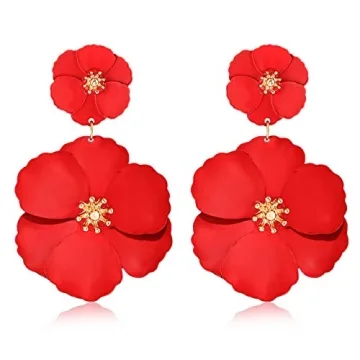 CEALXHENY Flower Dangle Earrings Boho Layered Floral Petal Drop Earrings Statement Stud Earring for Women (A-Red)