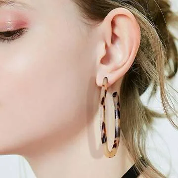 CEALXHENY Women’s Mottled Hoop Earrings Bohemia Acrylic Resin Hoops Stud Earrings