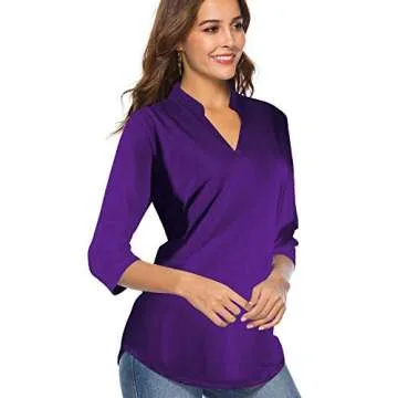 CEASIKERY Women's 3/4 Sleeve V Neck Tops Casual Tunic Blouse Loose Shirt Purple