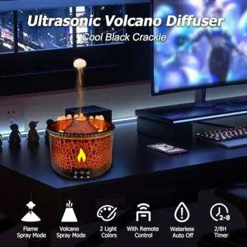 Cechlicht Volcano Diffuser, Essential Oil Diffuser 300ml Volcano Humidifier with Flame & Volcano Mist Mode, 2 Colors, Timer, Auto Shut-Off, Remote Control, Flame Diffusers for Home Bedroom Black
