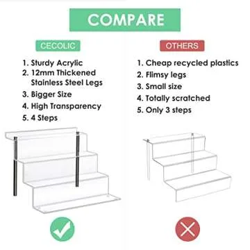 CECOLIC Acrylic Riser Shelf 4 Tier Clear Display Stand for Collectibles Pop Figures, Cupcakes, Perfumes, Display Risers for Decorating & Organizing - 11.8 x 10.8 x 6.5 in (Large, 2 Pack)