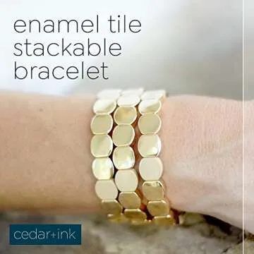 Show moreIntroducing the Cedar and Ink Stackable Bracelets, a stunning collection of tile bracelets designed to add a touch of elegance and fun to any outfit. Crafted with precision using high-quality alloy metal, these bracelets feature four layers of lead-free and nickel-free enamel paint, ensuring a durable and vibrant accessory that will last. With their elastic thread design, these bracelets slip on and off effortlessly, making them the ideal choice for the busy, fashionable woman looking to enhance her jewelry collection. Available in five trendy designs, including the sophisticated Gold Honeycomb, these bracelets are perfect for those who love to mix and match styles to create a personalized look.