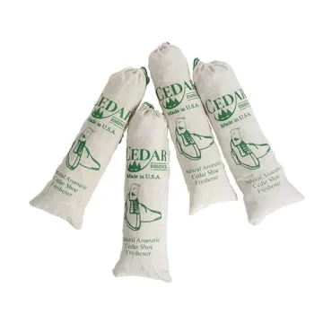 Show moreIntroducing the Cedar Essence Aromatic Cedar Sachet Shoe Fresheners 4-Pack—an essential companion for anyone who values freshness and a pleasant scent in their footwear. Proudly crafted in the U.S.A. from 100% aromatic cedar, these shoe freshener sachets are designed to tackle unpleasant odors while providing a touch of natural elegance. Each sachet is made from breathable cotton, ensuring optimal airflow to keep your shoes clean and fresh. With high-quality cedar chips packed into every bag, these sachets don't just mask odors; they effectively eliminate them while absorbing moisture, making them a perfect solution for keeping your shoes and storage spaces odor-free.