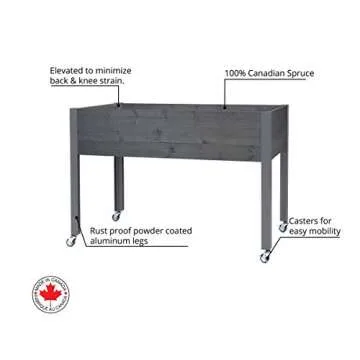 Why You Will Love This Product: With this planter, gardening becomes a delightful activity once more. Say goodbye to the discomfort of bending and kneeling, and hello to a pleasant experience of nurturing your plants. The aesthetics of the dark gray finish along with the functional wheels allow for both beauty and adaptability. Whether you enjoy cooking with fresh herbs or simply want to experience the joy of watching something grow, the CedarCraft Elevated Spruce Planter enhances your gardening journey, crafting a connection between you and nature that is deeply rewarding.