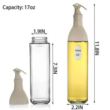 Cedilis 4 Pack Olive Oil Dispenser Bottle, 17oz Clear Glass Vinegar Cruet Bottle with Label, Leak Proof, BPA-free,Olive Oil Carafe Decanter for Kitchen