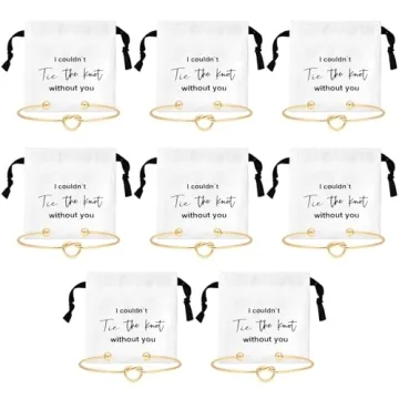 Each set includes 8 drawstring bags and 8 matching knot bracelets, making it perfect for bridal parties.