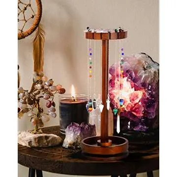 Equipped with a convenient rotating wooden stand, this holder allows you to view and access all pendulums effortlessly. The rotating display not only elevates the ease of everyday use but also enhances the aesthetic of any market or personal showcase, ensuring your pendulums are always the center of attention. Whether you are a vendor or an enthusiastic collector, this stand will surely help sell your items with swiftness and elegance.