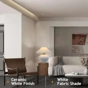 CEKUXPS Rustic Farmhouse Table Lamps, Black 21.6” Tall Ceramic Table Lamp, Simple Textured Ceramic Lamp Body with White Textured Shade Bedside Table Lamp for Living Room Bedroom Office (White)