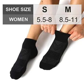 CelerSport 6 Pack Women's Ankle Socks with Cushion, Sport Athletic Running Socks, 6 Pair Black, Medium