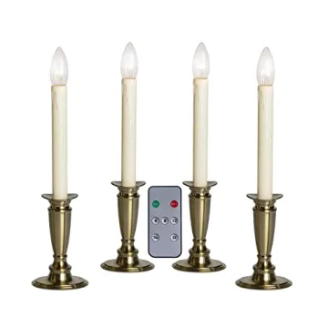 Celestial Lights Set of 4 Battery Operated Window Candles with Remote Control - Brushed Brass