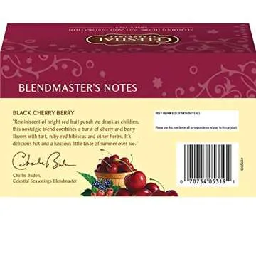 Show moreIndulge in the refreshing bliss of our Black Cherry Berry Herbal Tea, beautifully crafted from high-quality ingredients for a truly delightful beverage experience. This herbal tea comes in six convenient 20-count boxes, ensuring you have enough to enjoy day after day. Infused with the vibrant flavors of hibiscus, rosehips, and natural berry flavors, every sip transports you to a garden of flavor that is both caffeine-free and gluten-free.