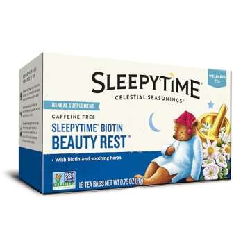 Show moreIndulge in a serene escape with the Celestial Seasonings Sleepytime Biotin Beauty Rest Tea, expertly crafted to nourish your body and mind. Each tea bag is a delightful blend of biotin (vitamin B7) and soothing herbal ingredients that help you embrace your self-care journey. Whether you need a moment of tranquility after a busy day or seek to elevate your beauty routine, this caffeine-free herbal tea will support your wellness goals while soothing you into restful slumber. The exquisite blend of calming chamomile, lemon balm, and spearmint brings both comfort and taste, making it a perfect addition to your nighttime ritual.