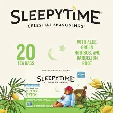 Show moreDiscover tranquility with Celestial Seasonings Sleepytime Wellness Detox Tea, a soothing herbal blend designed to calm your mind and enrich your wellness routine. Rooted in tradition, this delightful tea features a cherished mix of chamomile, spearmint, and other gentle herbs, offering a perfect remedy for relaxing moments. But we’ve taken it a step further by introducing nourishing aloe, green rooibos, and dandelion root into the mix, elevating your health while providing a comforting sip that's caffeine-free and simply delightful. Whether you're winding down for a cozy evening or seeking a mid-day pause, this tea ensures your Perfect Cup, effortlessly steeped in just 4-6 minutes with no fuss.