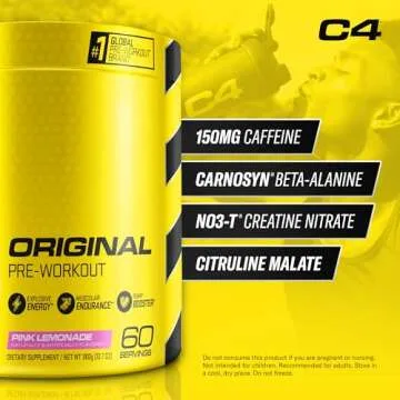 Cellucor C4 Original Pre Workout Powder Pink Lemonade Vitamin C for Immune Support Sugar Free Preworkout Energy for Men & Women 150mg Caffeine + Beta Alanine + Creatine 60 Servings