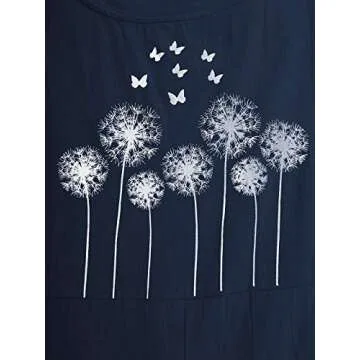 Celmia Women's Casual Loose Jumpsuits Button Strap Butterflies Flower Print Bib Overall with Pockets 03-Navy Medium